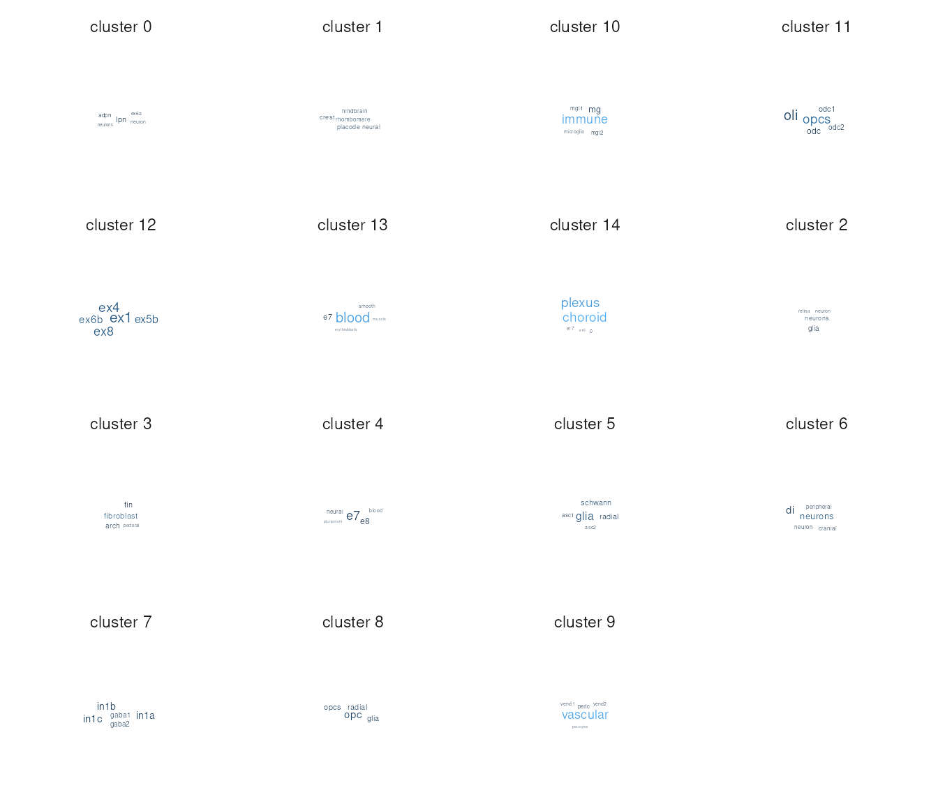 enriched terms labeled at cluster centers: